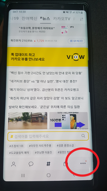 먼저 카카오톡을 실행하면 아래쪽에 점 3개가 보이는데 이것을 클릭해 주세요